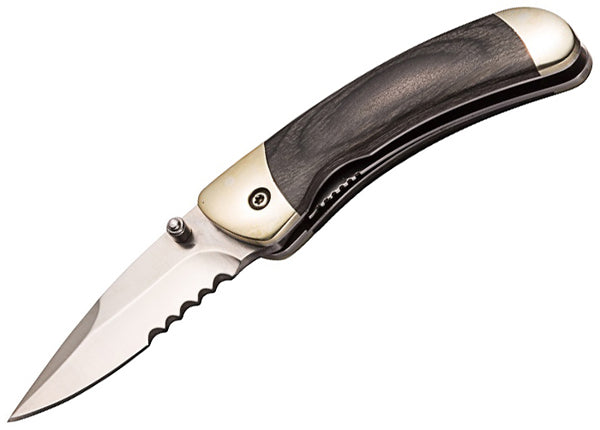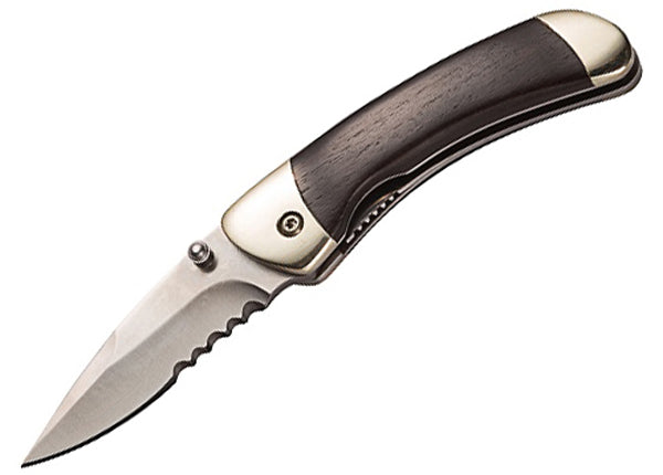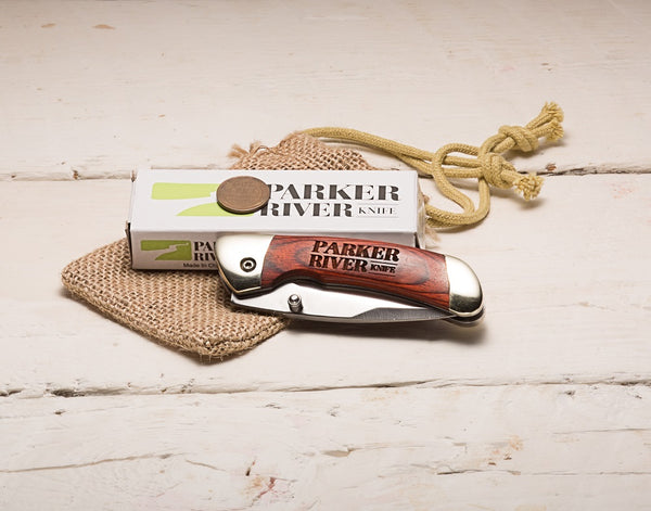The Parker River "Classic" Knife is a sturdy and reliable linerlock knife designed for everyday use. The classic look of the wood handle is inspired by the knives our grandfathers carried years ago. While classic in its looks, this knife boasts modern features and performance. Made from high quality stainless steel, the partially serrated drop point blade holds a sharp edge while being extremely resistant to corrosion. This is a solid knife designed to last a lifetime. The wood handles offer the perfect space for custom engraving. Add a name or message to the knife, up to 24 characters, and create a unique tool that's also a keepsake.
